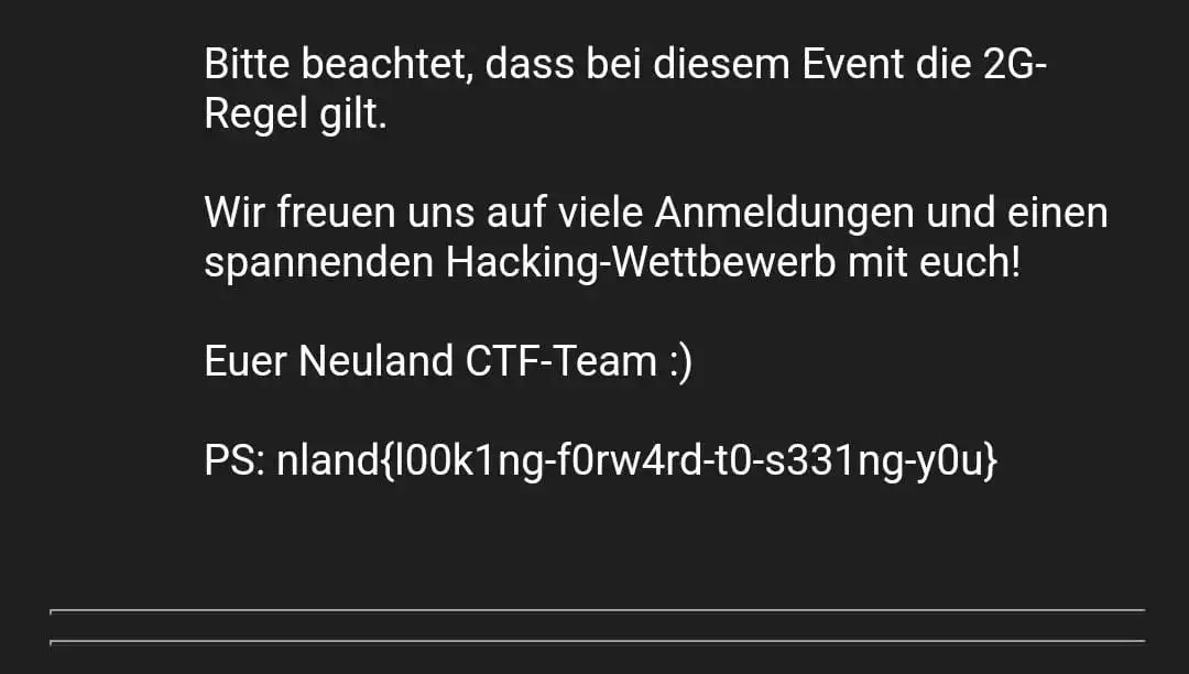 On the 2nd of April, Neuland held it's first own CTF in the Technische Hochschule Ingolstadt. About 40 participants spent the following 8 hours solving challenges and making new friends. To round off the event, we wrote a blog post detailing the solutions to the challenges. If you want to try them yourself, here is the link to the corresponding GitHub repository. Have fun!