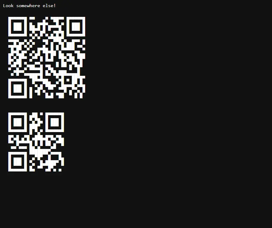 We are presented with the backend of a shop system. The frontend isn't of much use. There are two QR codes and the message to "Look somewhere else!". We only get rickrolled if we scan the first QR code.