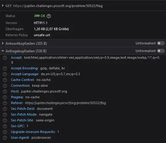We just need to change the User-Agent to picobrowser and request the flag picoCTF{p1c0_s3cr3t_ag3nt_51414fa7}.